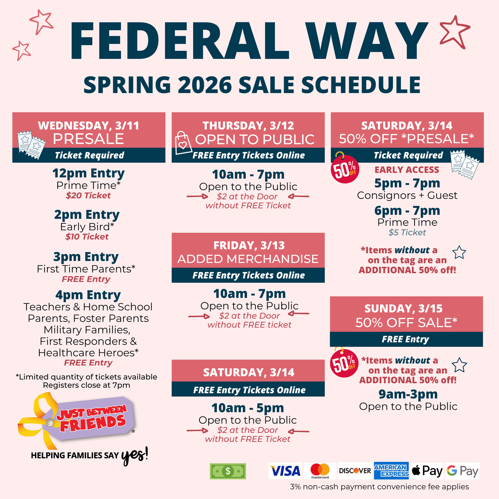 We know how important it is to get what your kids need at the prices you love. You can get great deals at Just Between Friends in a variety of ways! Shop the presale, general admission or discount days.